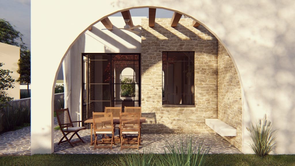 בית מארח בסגנון ים תיכוני. הבית תוכנן תוך הקפדה על קנה מידה אנושי לאדם החי בו וסב סביב חצר אירוח חיצונית אינטימית, מוארת ומאווררת. חומרי הגמר הינם על בסיס טיח מינרלי בהיר בשילוב אבן פראית מקומית. אלומיניום בלגי שחור ורצפת תפזורת צפחה.