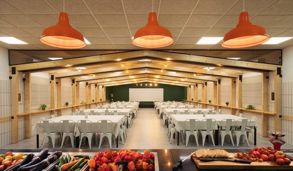 מרכז אירועים קטן ואינטימי בלב כפר הנוער קדמה . העבודה שיקמה מן היסוד את חדר האוכל ההיסטורי בכפר. במרכז האולם הוצבו גמלוני עץ טבעיים שתיחמו את התקרה הפתוחה וסייעו בהעברת מערכות בצורה סמויה . הגוונים של חומרי החיפוי בהירים וטבעי עם הדגש של נקודות צבע ירוקות ודומיננטיות בקצה הפאות המנוגדות באולם .
