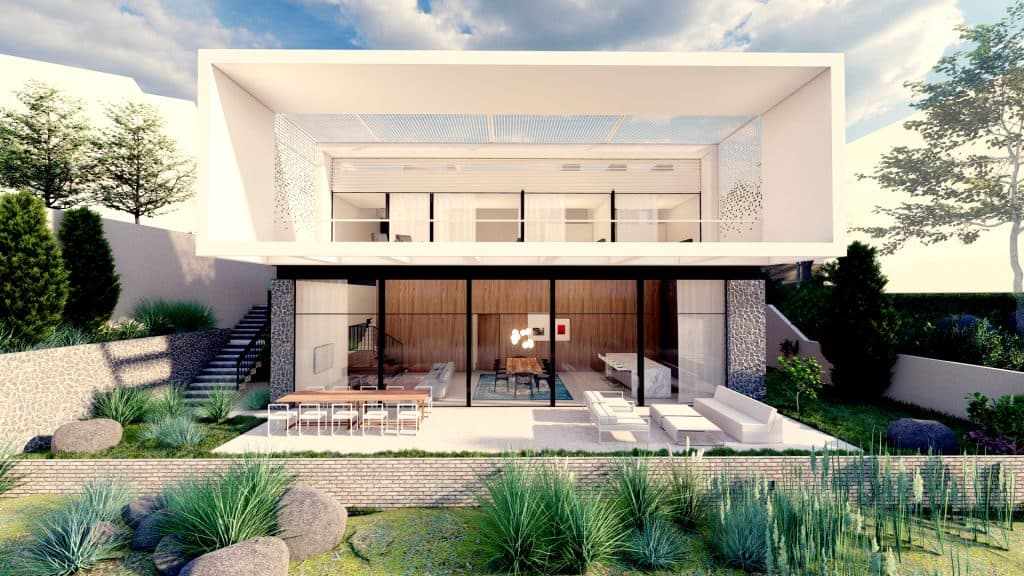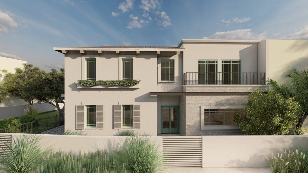 בית מגורים שמייצר חווית נופש ים תיכונית . הבית תוכנן על בסיס חומרים טבעיים ובהם טיח מינרלי גס וחיפוי עץ מלא בדלת הכניסה ובפרגולת השמש. מסת הבינוי פוצלה ל2 מפלסים וכך התאפשרה הרחקה של קומת המגורים הגבוהה מקו הרחוב. טכניקה זו יצרה פרופורציה נעימה לאדם השוהה בבית ולאדם הצופה בו מן הצד . […]